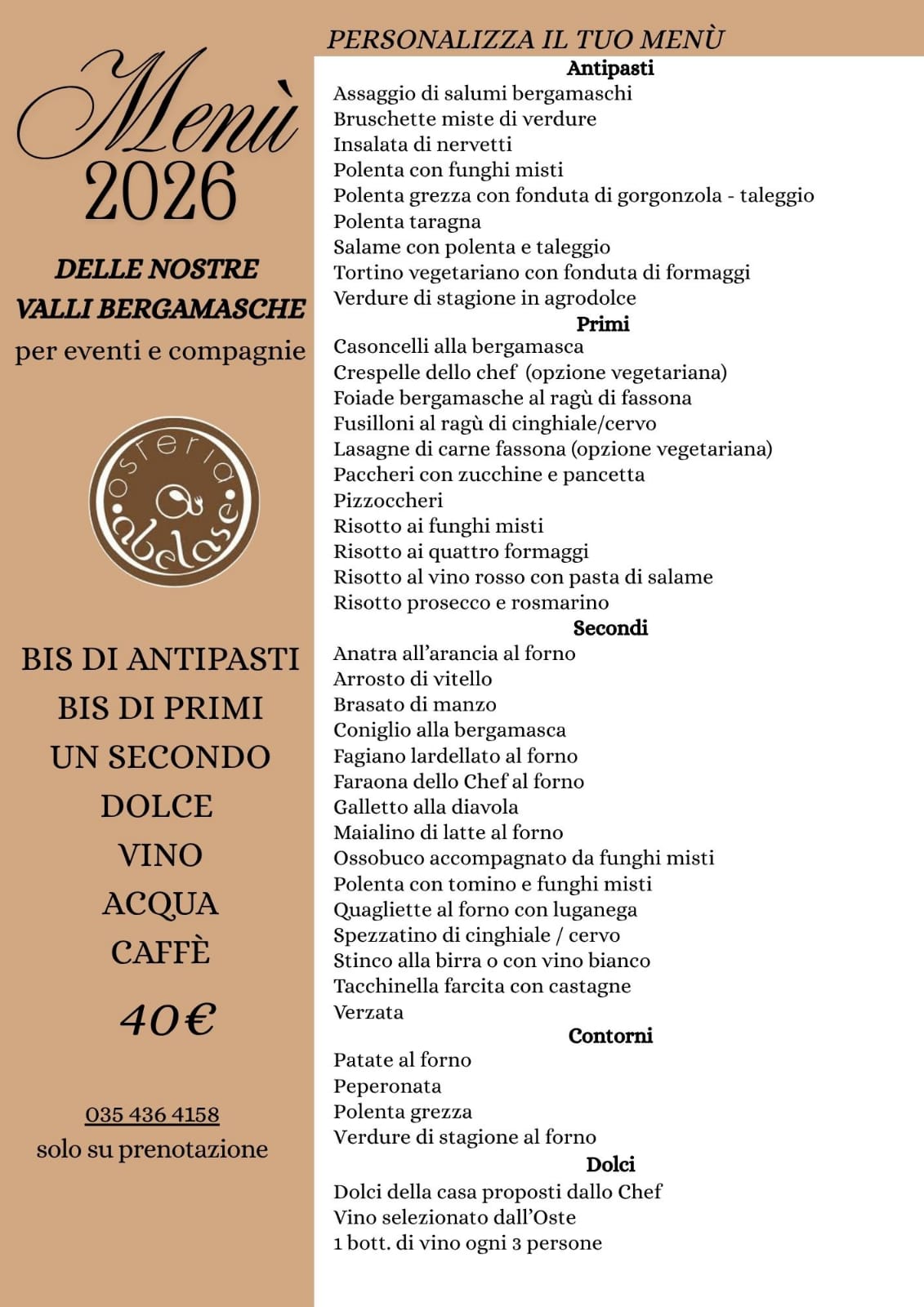 Scopri i prossimi eventi in programma all’Osteria Abelase, sarai aggiornato anche su tutte le novità.